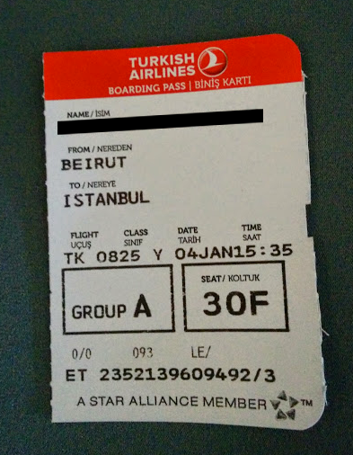 Sunday 4th January 2015, on bord Turkish Airlines flight TK0825 from Beirut to Istanbul.