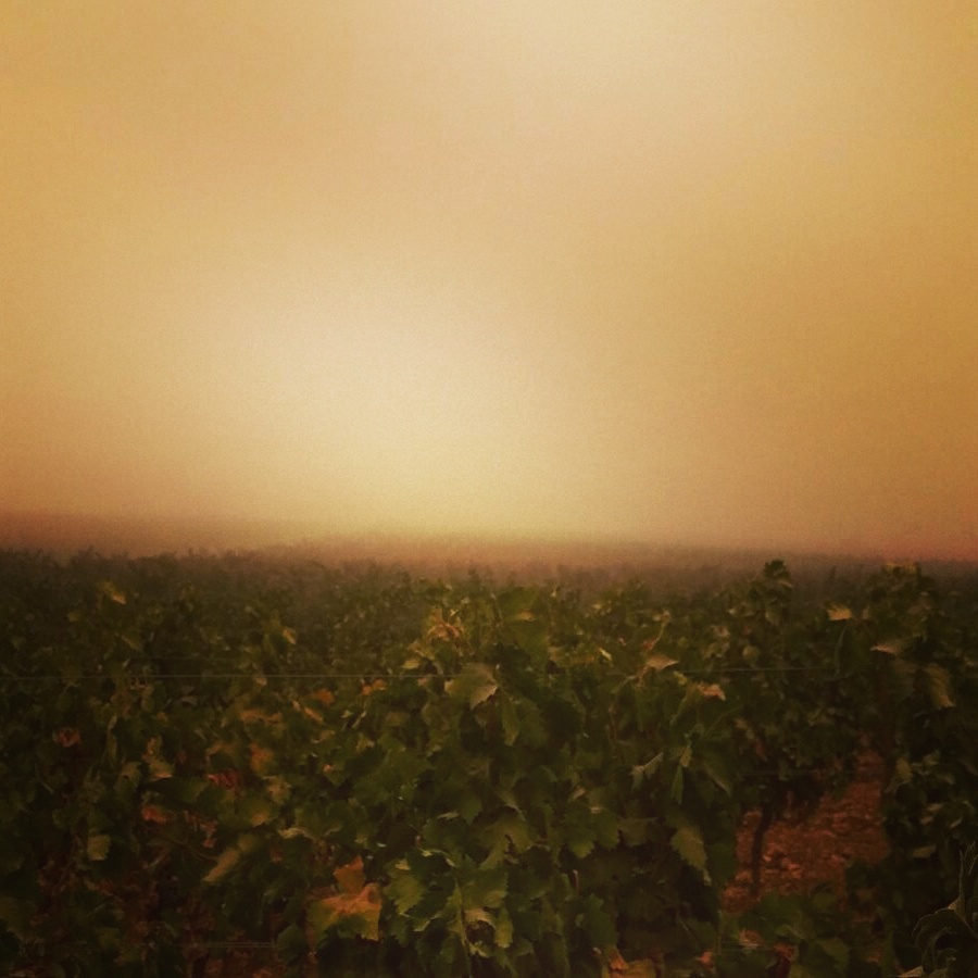 Mais un événement inattendu et imprévisible est venu perturber ces vendanges 2015, qui s’annonçaient très prometteuses en terme de qualité : une tempête de sable !!!