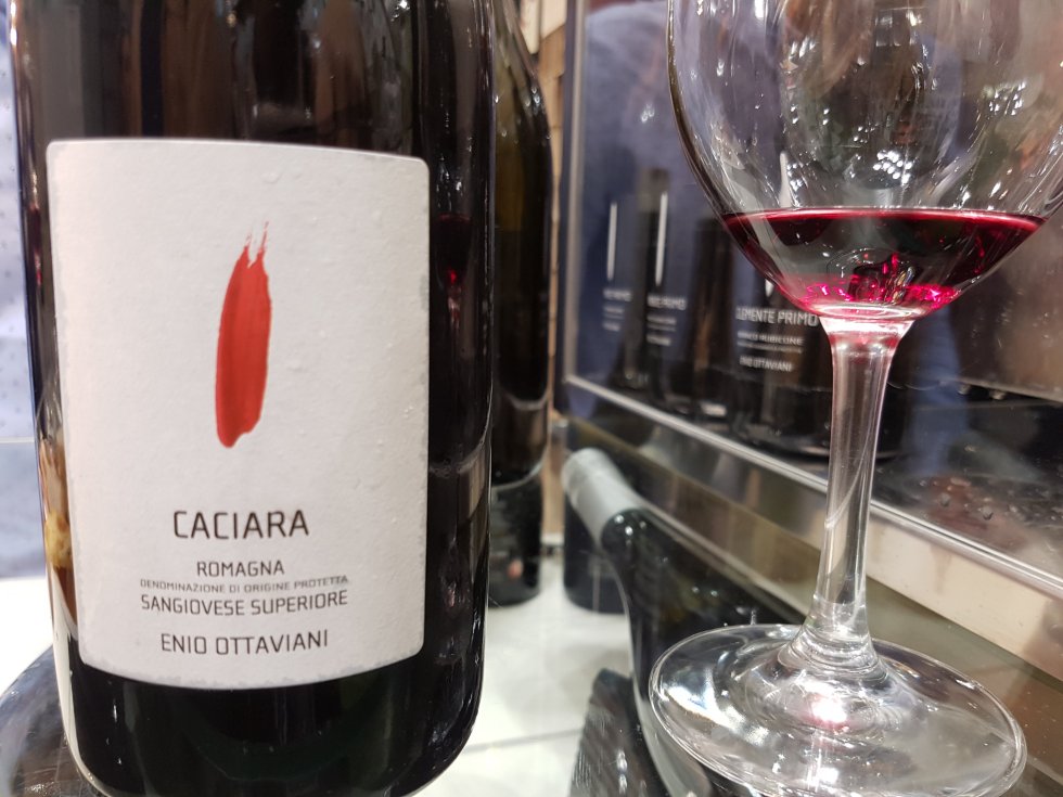 Enio Ottaviani, Caciara Romagna Dop, Sangiovese Superiore, un Sangiovese elaborato in modo che sia la freschezza la protagonista indiscussa. Il colore ricorda il Pinot Nero, meno struttura, ma lo stesso incredibile equilibrio ed eleganza.