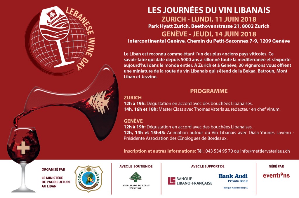 Les vins Libanaises se dévoilent en Suisse le 11 et le 14 Juin 2018.