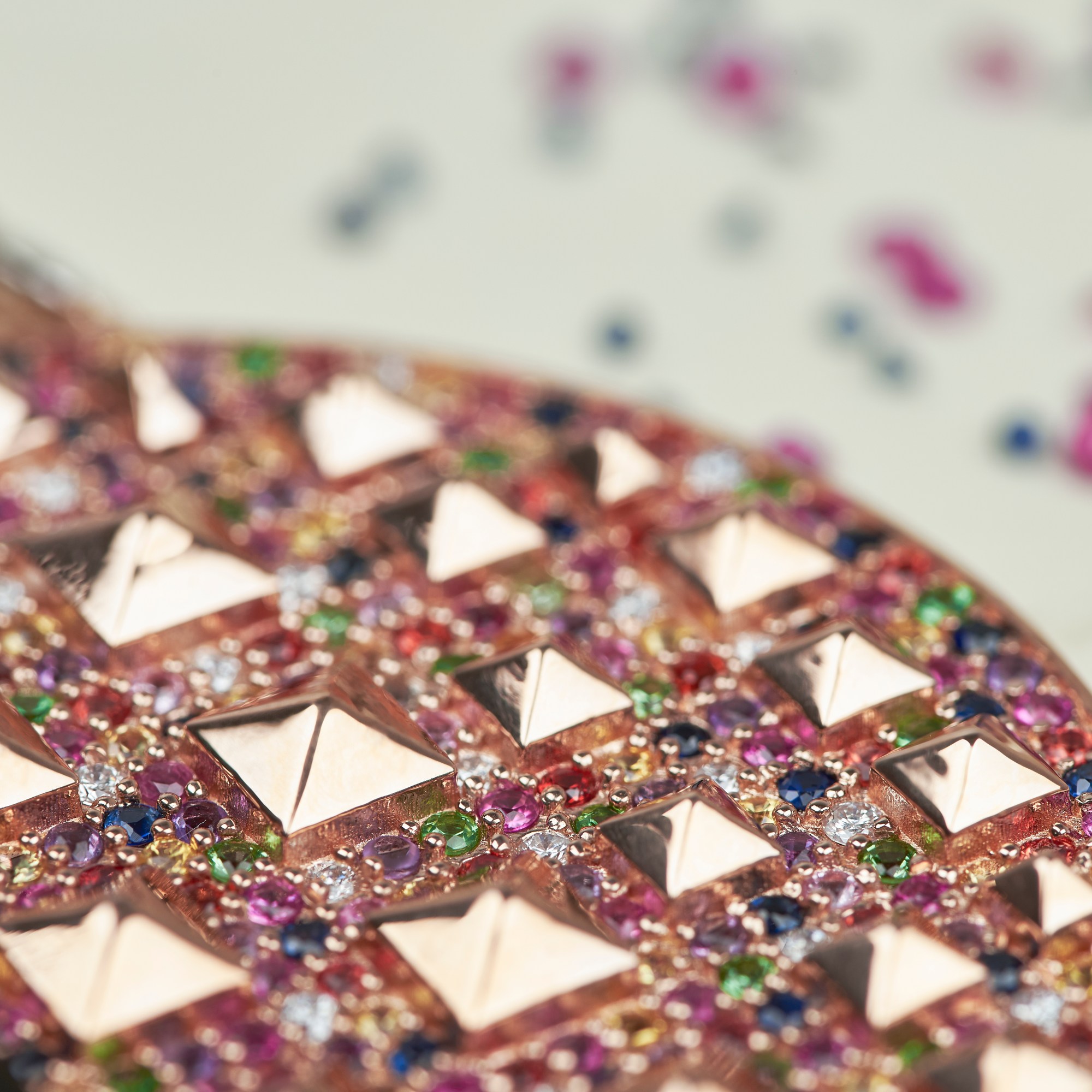 Terzihan’s ‘Neutra’ features bold proportions and a striking mix of colours and textures that provide an interesting contrast to the brilliant serenity of the Simone’s collection. In ‘Neutra’, jewellery lovers have decadent homages to the ancient cultures and places that captivate and inspire to this day. In addition to the ultra-sized pendants, cuffed bracelets and domed rings that have made this collection famous since its release earlier this year, Terzihan will début multicoloured versions of its iconic medallion pendant at the fine jewellery pop- up launching this October.