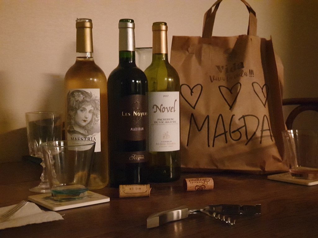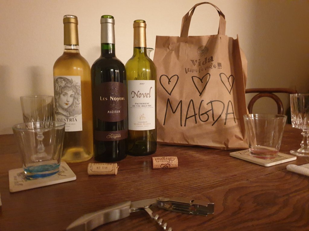 Novel 2017, Pacherenc du vic-bil sec, vignoble Marie Maria. Assemblage de Gros Manseng et Petit Courbu. Un vin sec, avec des petites note d’oxydation mais une fraîcheur très présente, on peut y retrouver des agrumes et de notes de pomme.