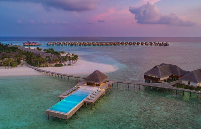 Heritance Aarah offers elite accommodations in 150 villas, including 26 intimate duplex ocean suites, 56 sunset ocean villas, and 68 land villas. Six restaurants and five bars provide a diverse dining experience for the most discerning guests. The resort’s unparalleled top-notch facilities include in-room dining, complimentary Wi-Fi, pool-bar, a fully-equipped gymnasium, and Koka Kid’s Club. Those looking for true relaxation and inner bliss can get it at the overwater Medi Spa, one of the most holistic and the first-of-its-kind Maldives spa resorts, which offers six treatment rooms, among which a steam room is available.