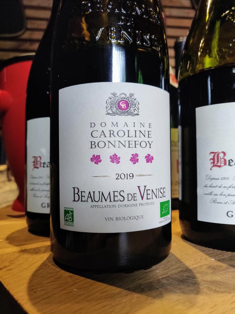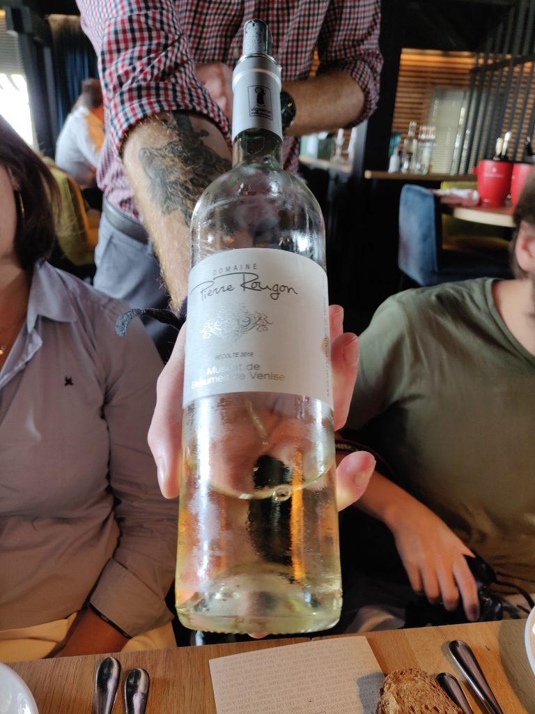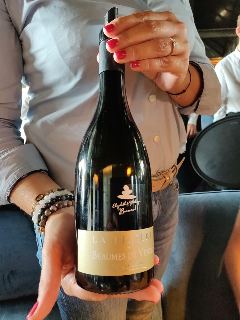 Les bonnes tables étant faites pour rapprocher les gens, et la convivialité méridionale aidant, j’aimerais vous introduire 2 producteurs de Beaumes de Venise rencontrés ce jour-là. Honneur aux femmes, la première est Elisabeth Bernard du domaine La Ligière. Avec son mari Philippe, ils représentent la concrétisation d’un rêve de plusieurs générations, donner vie à la première cuvée du domaine La Ligière. Et comme si cela ne suffisait pas, ils se sont lancés dans l’agriculture biologique dès 2008. Le résultat de cette aventure, nous avons pu le déguster avec Elisabeth comme guide. Leur AOC Beaumes de Venise Rouge Les Garennes (2019), composé de 60% Grenache Noir et 40% Syrah et élevé en cuve béton, offre déjà un très bel équilibre dans sa structure et une délicate élégance dans la palette des arômes. Elle nous projette instantanément dans une ambiance « bar à vin » avec l’envie qu’elle puisse nous accompagner tout au long de la soirée.