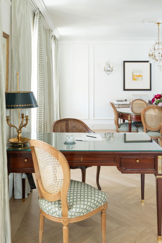 La Suite Eden est le fruit d’une vision audacieuse, signée par Mesdames Elvira et Narcisa Oetker. Elles ont imaginé un espace où la nature, l’artisanat d’art et le design contemporain dialoguent en parfaite harmonie. Inspiré par les lignes pures et les teintes douces, l’intérieur se pare d’une palette harmonieuse de craie et de verts, écho subtil au jardin extérieur. Des tissus texturés de la Maison Schumacher et Braquenié aux coussins délicats de Pierre Frey, chaque détail a été pensé pour créer une atmosphère de luxe discret et de sérénité.